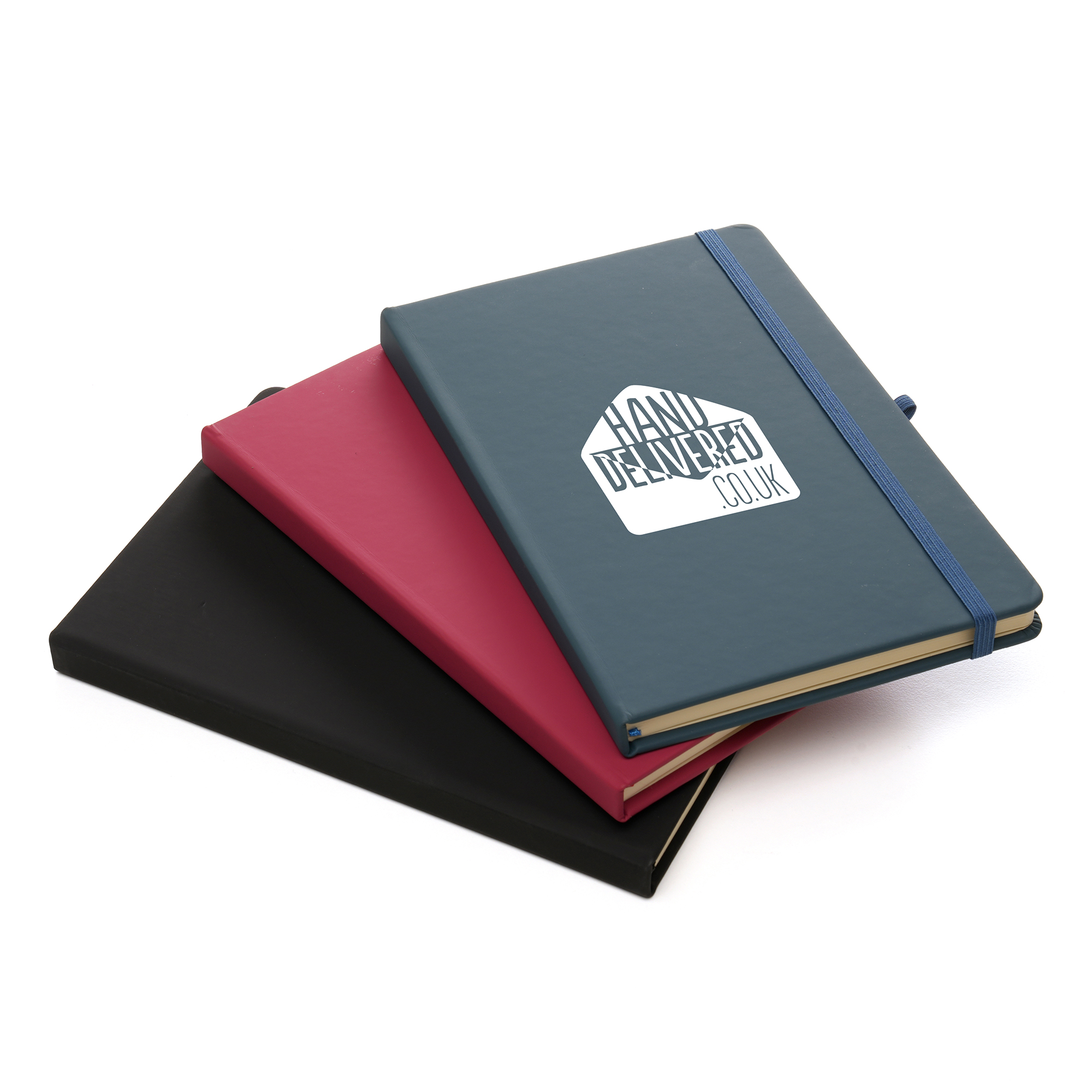 A5 PU soft finish 80 sheet lined diary with 2 days per page from January to December with no year included, ribbon bookmark, heavy duty back card pocket for securing business cards and loose notes, elastic pen loop and elastic closure