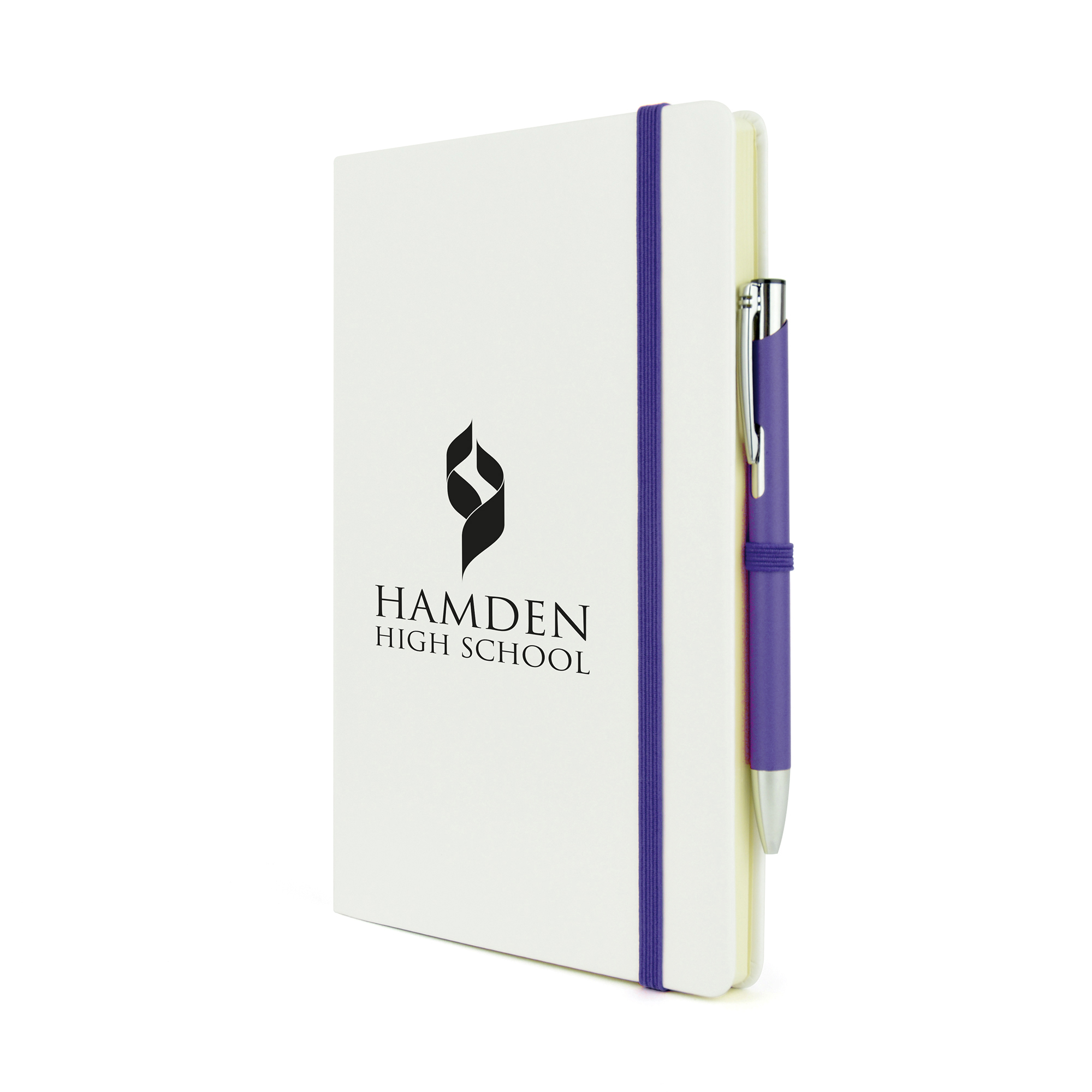 2-in-1 A5 white PU soft finish notebook with a matching Mole Mate Pen. (QS0865 & TPC982001)