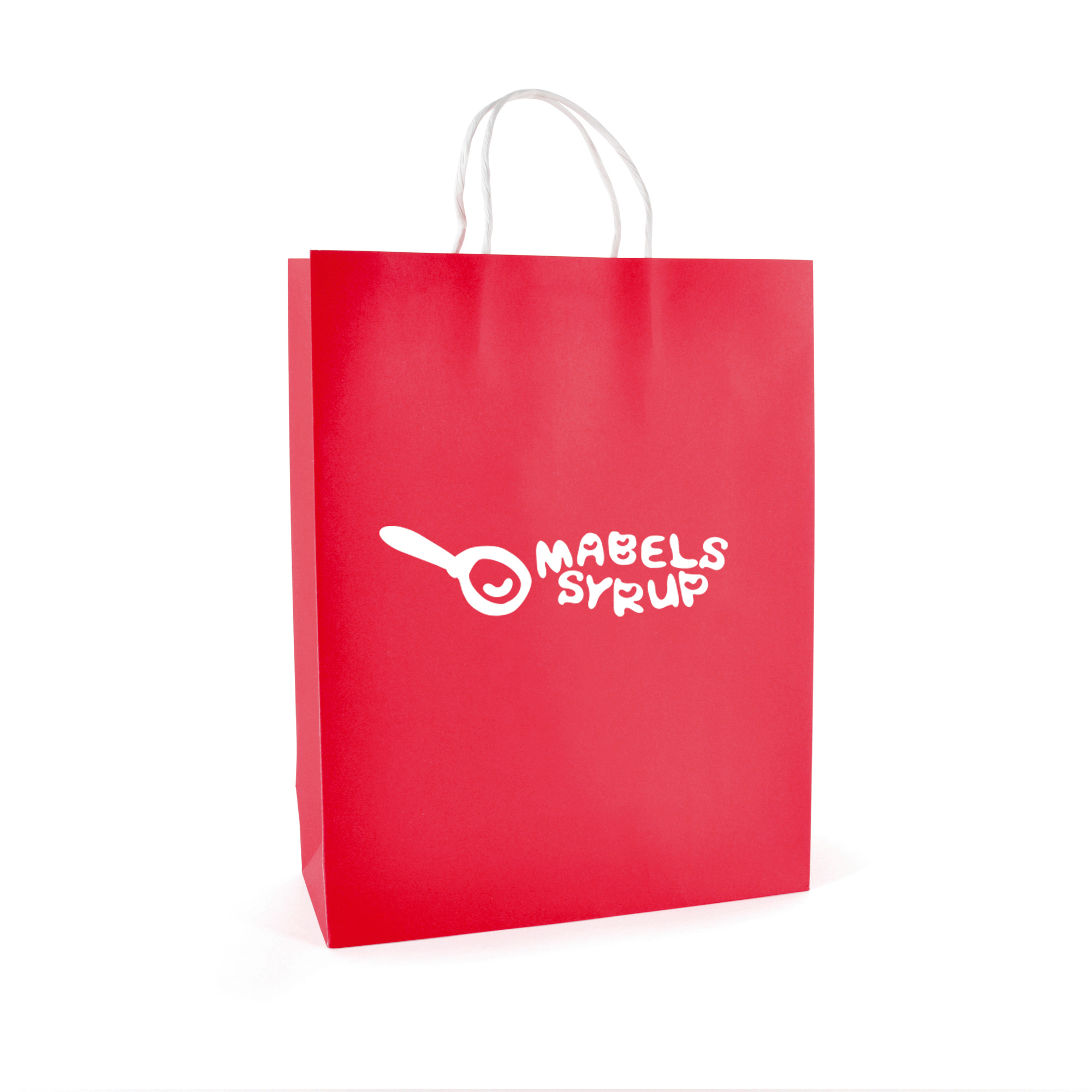 230gsm large coloured paper bag with paper twist handles and gusset.