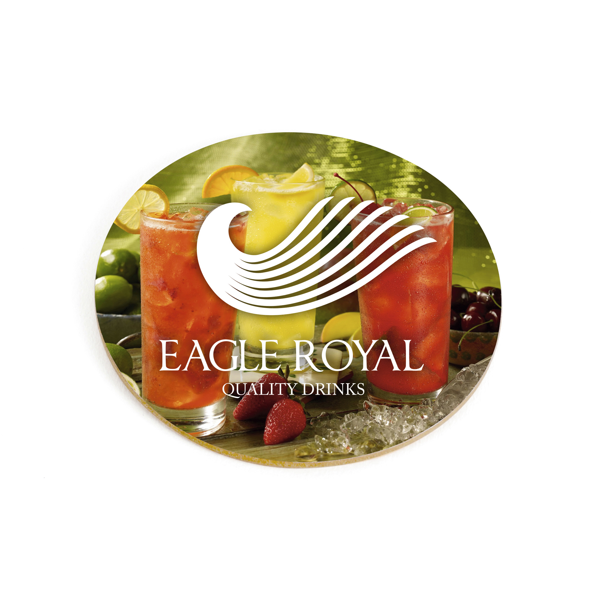 Single circular coaster with traditional cork backing.