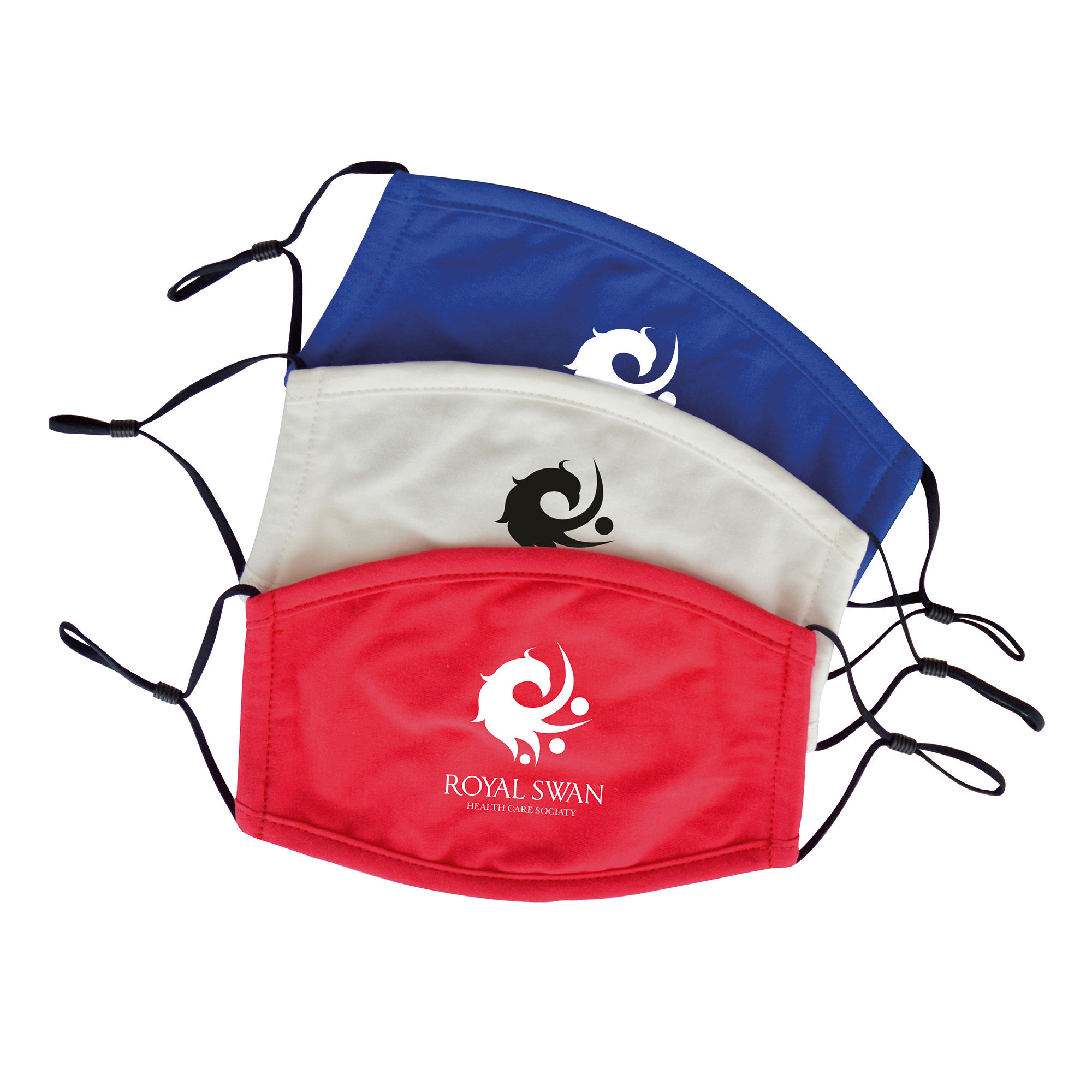 3 ply, 100% Cotton, 130gsm face covering. Secured by elastic ear loops with adjustable toggles for a better fit. Super soft, washable and reusable.