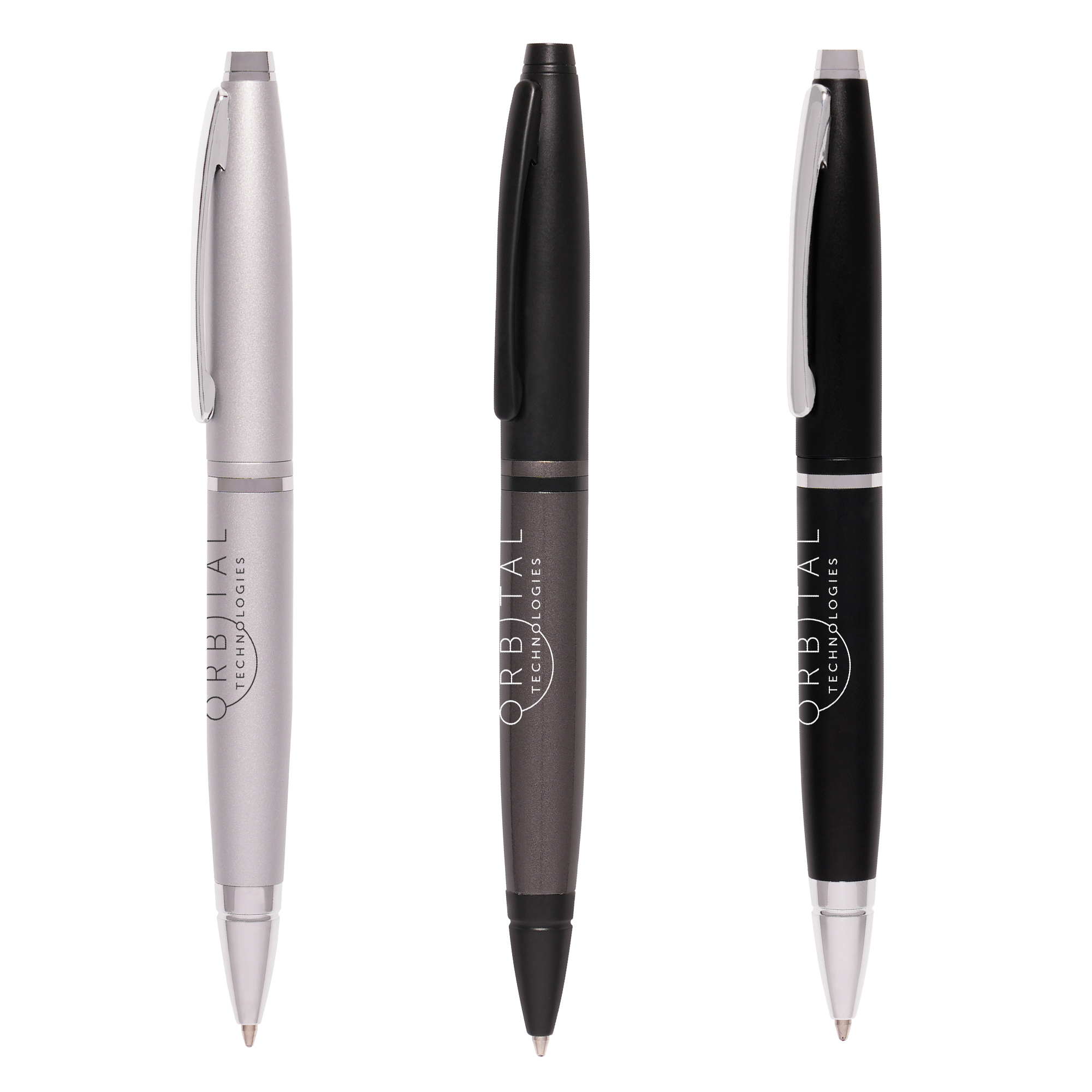 This contemporary metal twist action ball pen with a satin smooth finish is available in three sumptuous colours: black, silver or gunmetal. The robust yet elegant design engraves to reveal a stunning chrome logo thanks to the high-shine silver coating that lies below the pens surface. There is a print option too so whatever your branding needs, make this the corporate gift for your next marketing campaign, business event, exhibition or trade show. The Dover Ball Pen makes a wonderful gift for valued team members too, perhaps a reward for outstanding service or a special milestone you are celebrating? The metal ‘Parker style’ refill included with your purchase will ensure a long lasting, quality writing experience. Replacement refills can also be purchased to futureproof this product’s lifespan and maximise your brand exposure. It is also much kinder to the environment if only the refill is replaced and not the full pen unit! We have a number of stylish presentation boxes that would elevate this premium gift even further, please contact us today to discuss your gift options.