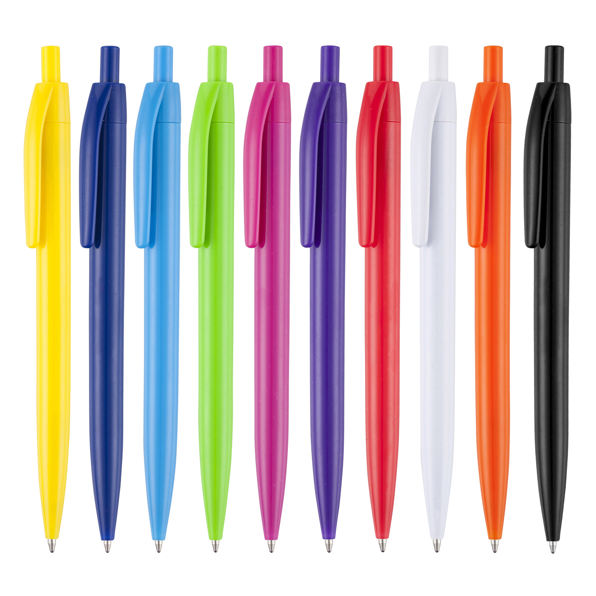 A low cost click action pen with a wide range of vibrant solid colours make for a low-cost ‘stand out’ pen! Has a great print area to the barrel