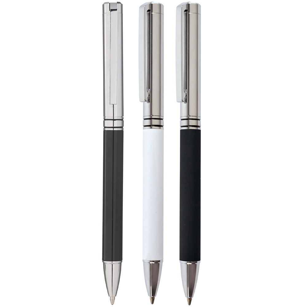 This elegant twist action pen has a jointed clip for that quality feel! Engraves to show chrome on bottom barrel if required. (Also available in soft feel TPC922601BKST)