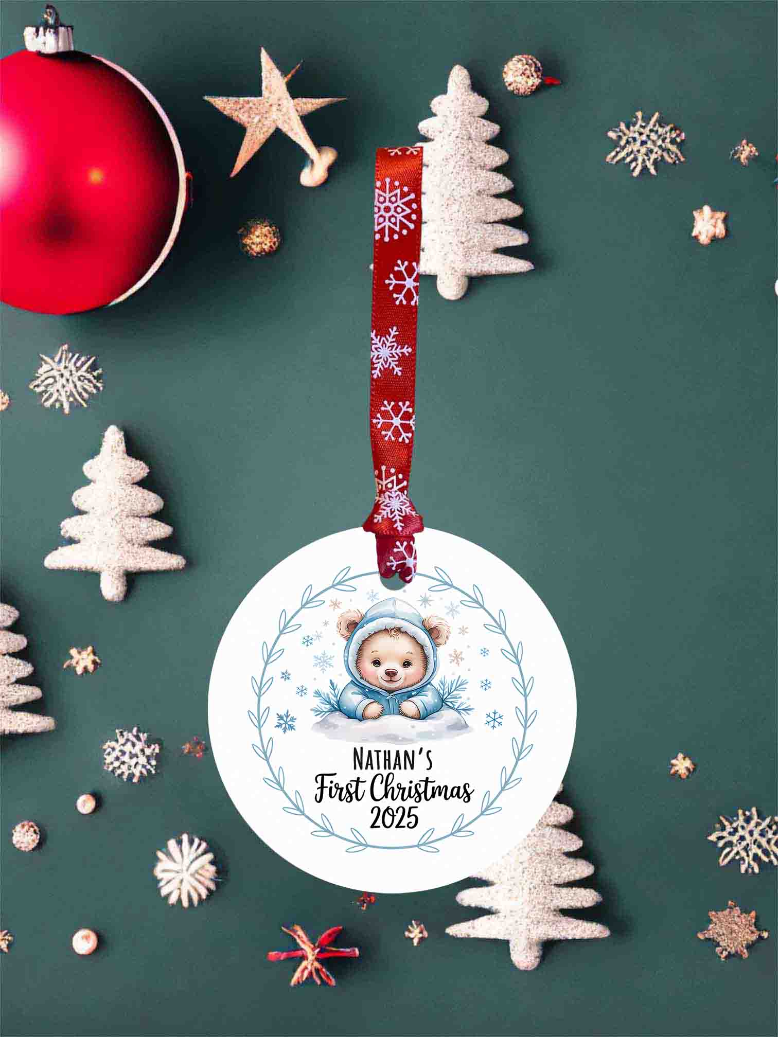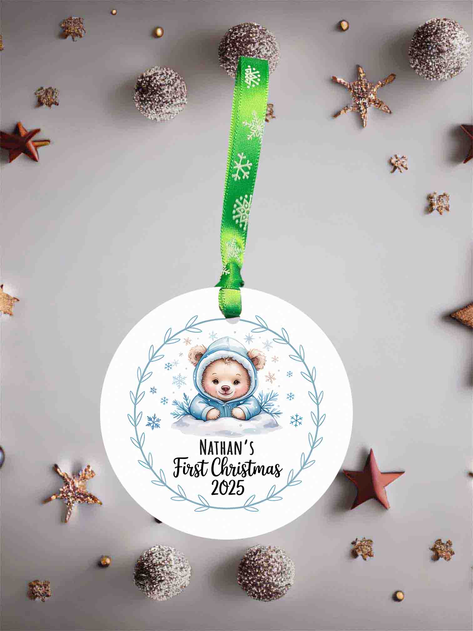Personalised Blue Bear First Christmas Acrylic Ornament