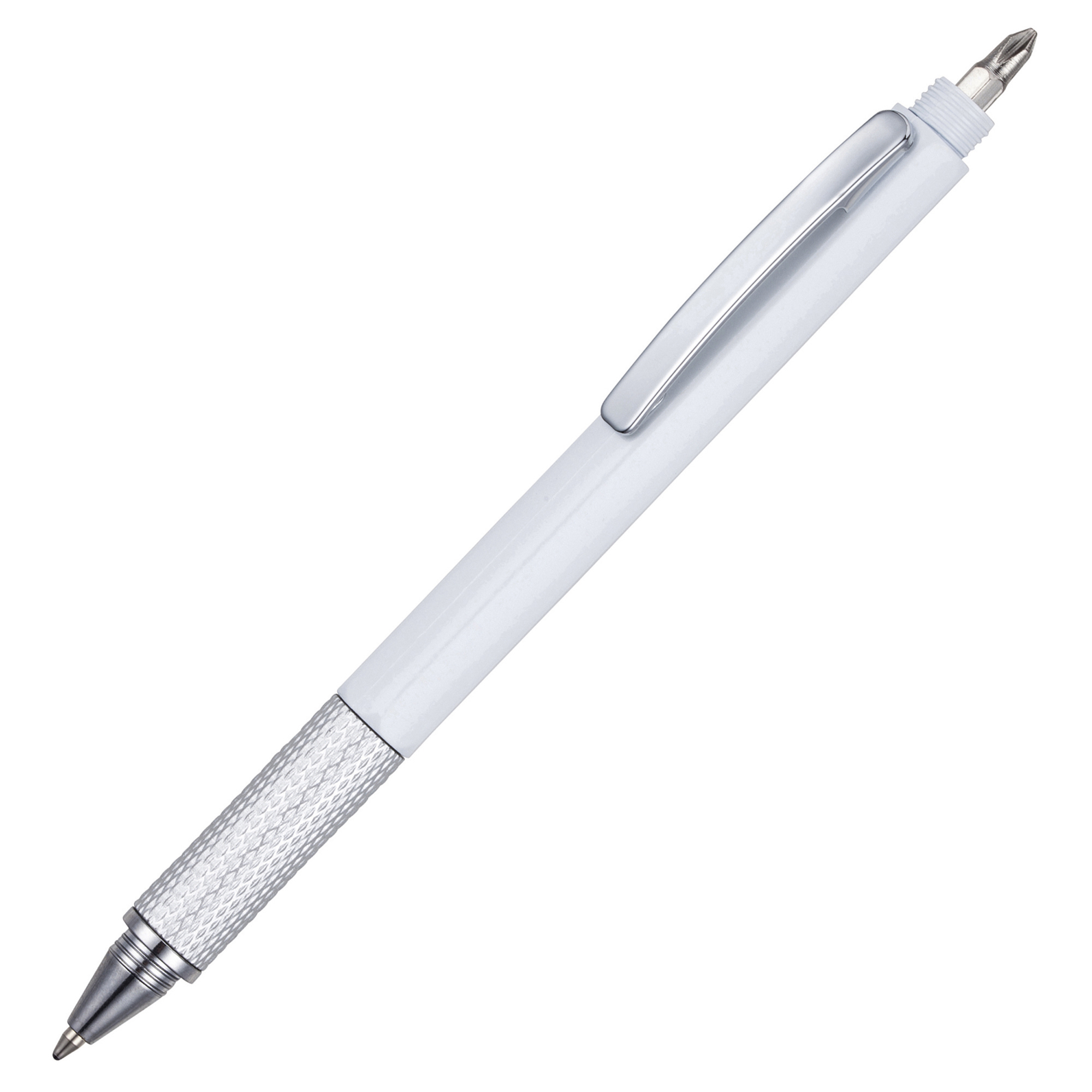 A low cost version of our best selling multi tool pen. Choose the stylus colour to suit your brand! An hexagonal multi function pen with a soft stylus, slot screwdriver, Phillips screwdriver, cm rule and inch rule and a spirit level.